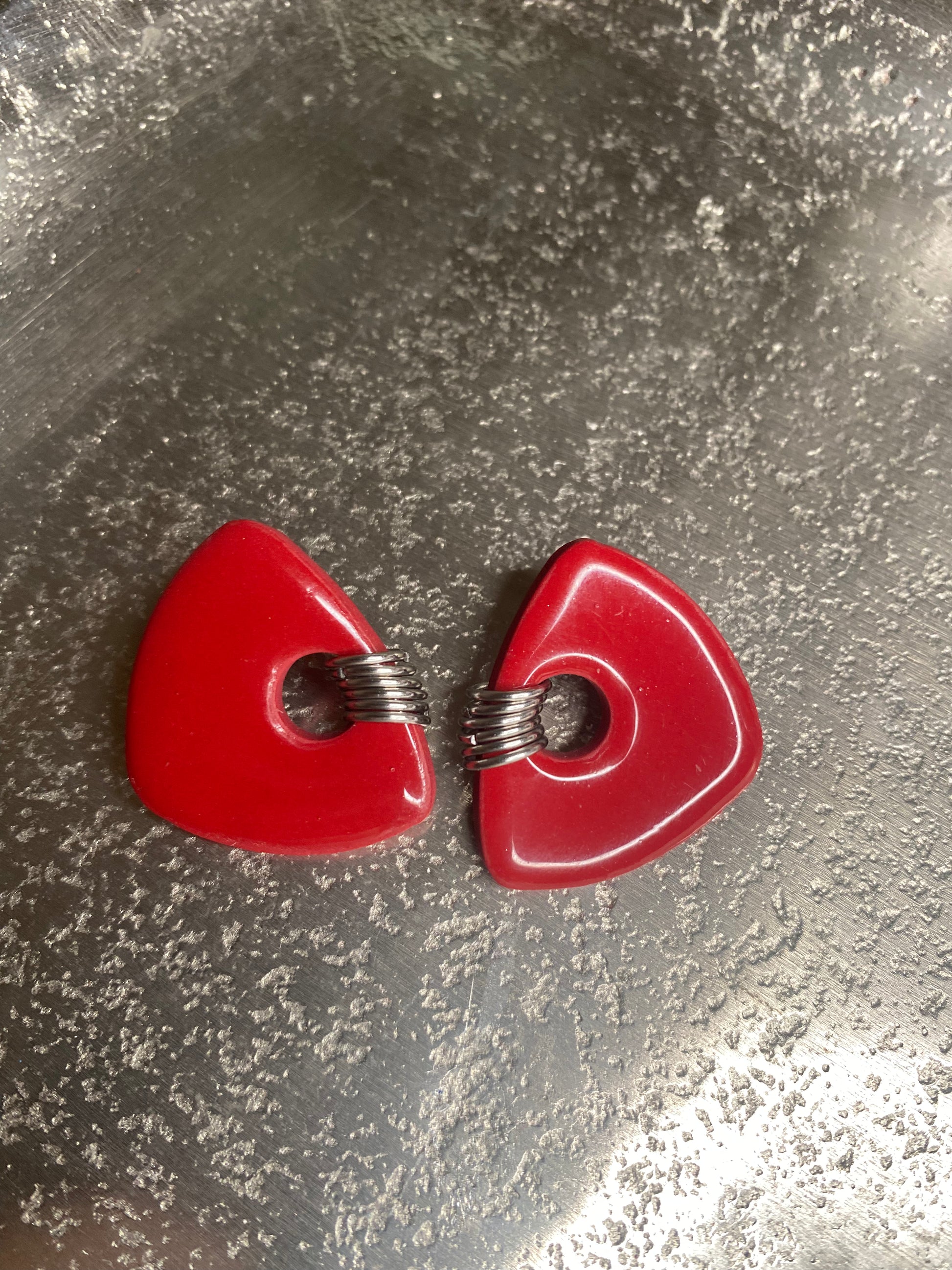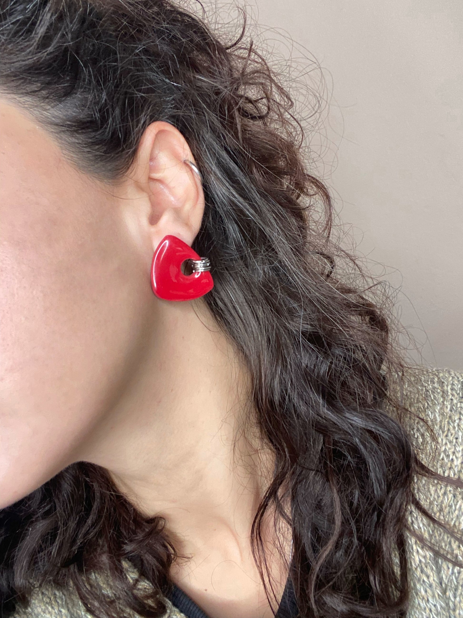 Φτιαγμένα στο χέρι από πολυμερικό πηλό με καρφωτό κούμπωμα από ανοξείδωτο ατσάλι, είναι υποαλλεργικά, ελαφριά και ιδανικά για όσες αγαπούν τον minimal σχεδιασμό με έντονο χαρακτήρα.