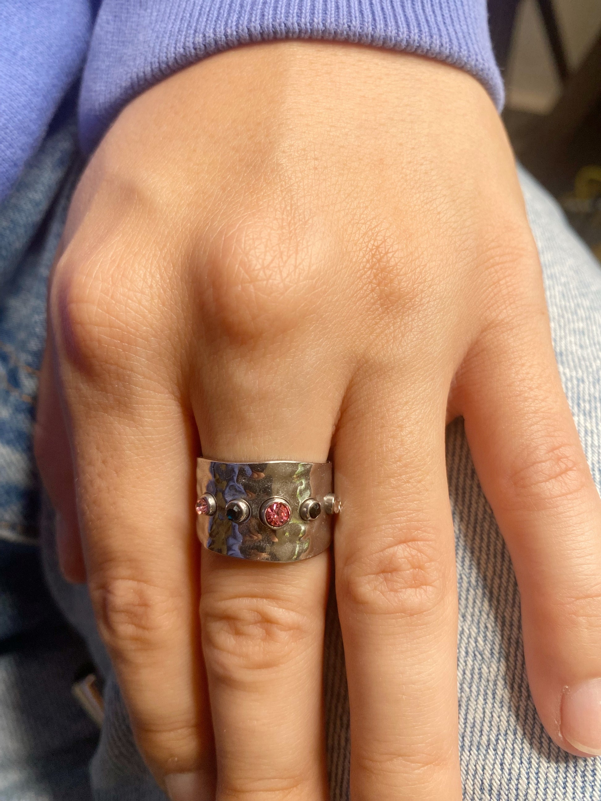 με σφυρήλατη επιφάνεια που διηγείται ιστορίες και ροζ πέτρες που θυμίζουν ανατολή.